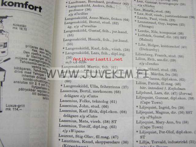 | Saatavilla | 3 kpl | | Julkaisuvuosi | 1970 | | Sivuja | 165 | | Painos | 1. | | Kunto | K3 | | Sidonta/painoasu | Nidottu (pehmeäk.) | | Kielet | Ruotsi |