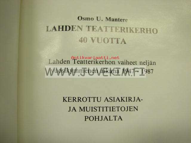 Mantere Osmo U., Lahden Teatterikerho, 198715 x 21 cm kirja.