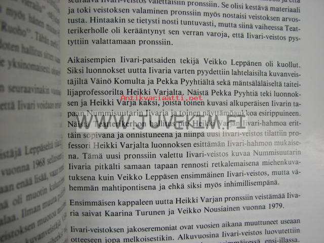 | Saatavilla | 1 kpl | | Julkaisuvuosi | 1987 | | Sivuja | 148 | | Painos | 1. | | Kunto | K3 | | Sidonta/painoasu | Nidottu (pehmeäk.) | | Kielet | Suomi |