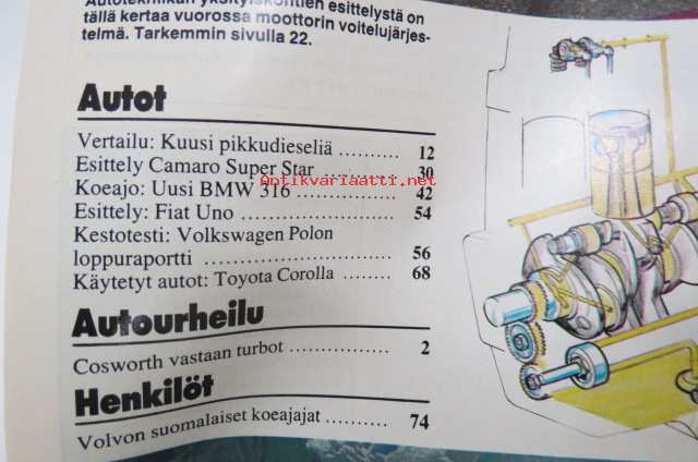 Tuulilasi 1983 nr 2, Pikkudieselit vertailussa, Kestotesti VW Polo, Fiat Uno, Super Star Camaro, Asenna itse autoradio, Volvon suomalasiet koeajajat, ym.