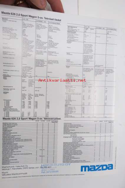 Mazda 626 Sport Wagon 1988 -myyntiesite / sales brochure