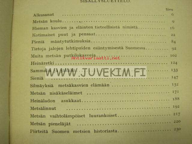 | Saatavilla | 1 kpl | | Julkaisuvuosi | 1931 | | Sivuja | 283 | | Painos | 1. | | Kunto | K3 | | Sidonta/painoasu | Nidottu (pehmeäk.) | | Kielet | Suomi |