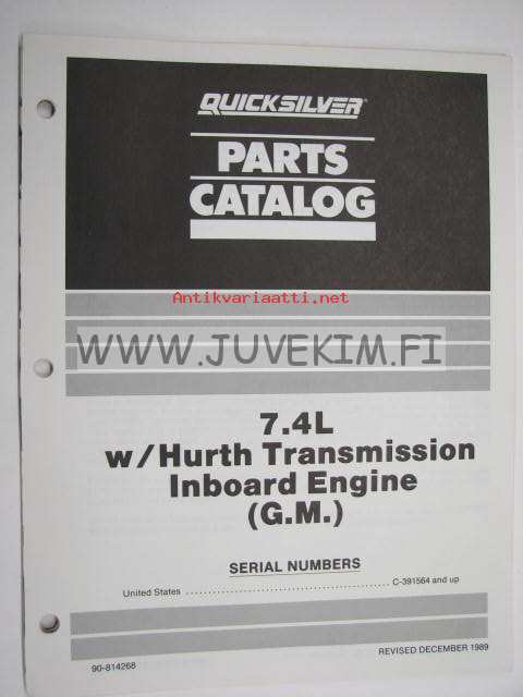 Quicksilver parts catalog -7.4L W / Hurth Transmission Inboard Engine (GM) serial numbers US C-391564 and up -varaosaluettelo