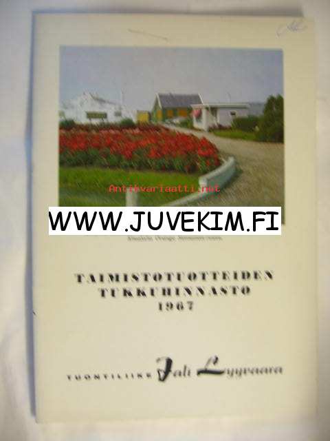 | Saatavilla | 1 kpl | | Julkaisuvuosi | 1967 | | Kunto | K3 | | Sidonta/painoasu | Nidottu (pehmeäk.) | | Kielet | Suomi |
