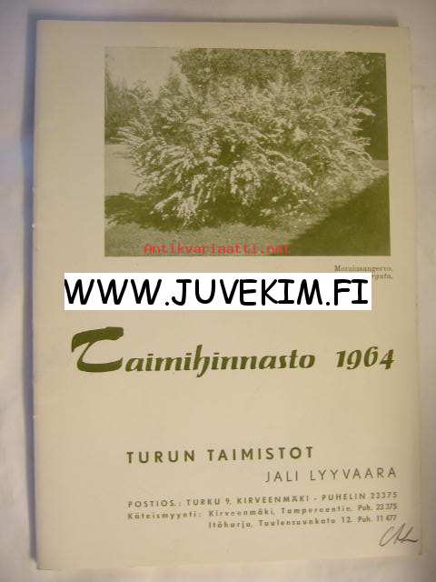 | Saatavilla | 2 kpl | | Julkaisuvuosi | 1964 | | Kunto | K3 | | Sidonta/painoasu | Nidottu (pehmeäk.) | | Kielet | Suomi |