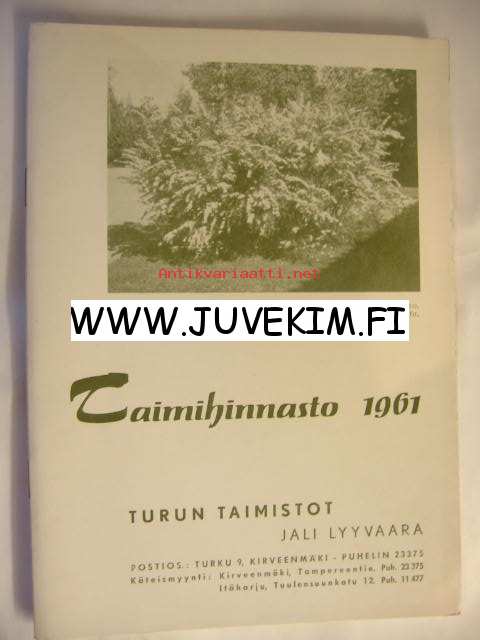 | Saatavilla | 2 kpl | | Julkaisuvuosi | 1961 | | Kunto | K3 | | Sidonta/painoasu | Nidottu (pehmeäk.) | | Kielet | Suomi |