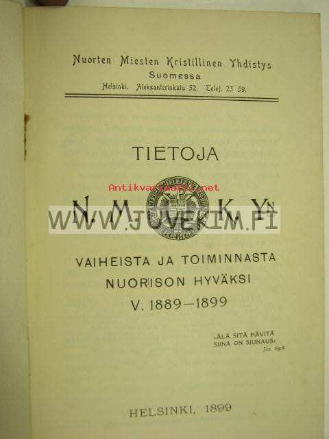 Nuorten Miesten Kristillinen Yhdistys, 189913 x 20 cm kirja.