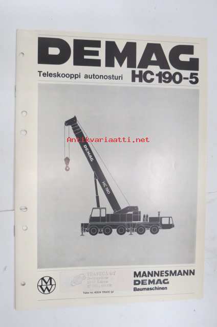 Mannesmann Demag Teleskooppi autonosturi HC 190-5 -myyntiesite / sales brochure