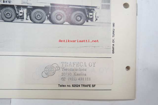 | Saatavilla | 1 kpl | | Julkaisuvuosi | 1982 | | Sivuja | 8 | | Kunto | K2 | | Sidonta/painoasu | Pienpainate | | Kielet | Suomi |
