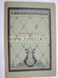 | Saatavilla | 1 kpl | | Julkaisuvuosi | 1922 | | Sivuja | 56 | | Painos | 1. | | Kunto | K2 | | Sidonta/painoasu | Nidottu (pehmeäk.) | | Kielet | Suomi |