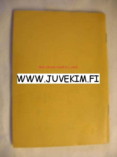 | Saatavilla | 1 kpl | | Julkaisuvuosi | 1989 | | Kunto | K2 | | Sisältää kirjoitusta | | Sidonta/painoasu | Nidottu (pehmeäk.) | | Kielet | Suomi |
