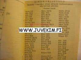 | Saatavilla | 1 kpl | | Julkaisuvuosi | 1963 | | Kunto | K2 | | Sidonta/painoasu | Nidottu (pehmeäk.) | | Kielet | Suomi |