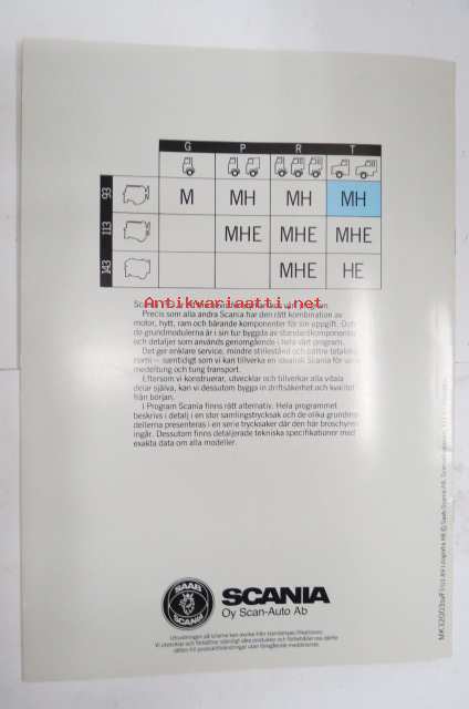 Scania T93 1989 -myyntiesite, ruotsinkielinen / sales brochure, in swedish