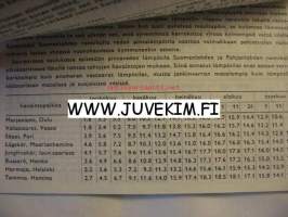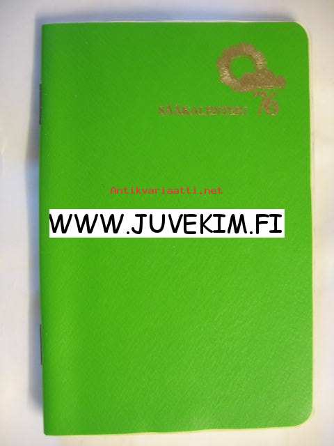| Saatavilla | 1 kpl | | Julkaisuvuosi | 1976 | | Kunto | K2 | | Sisältää kirjoitusta | | Sidonta/painoasu | Nidottu (pehmeäk.) | | Kielet | Suomi |