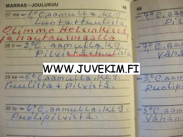 | Saatavilla | 1 kpl | | Julkaisuvuosi | 1977 | | Kunto | K2 | | Sisältää kirjoitusta | | Sidonta/painoasu | Nidottu (pehmeäk.) | | Kielet | Suomi |