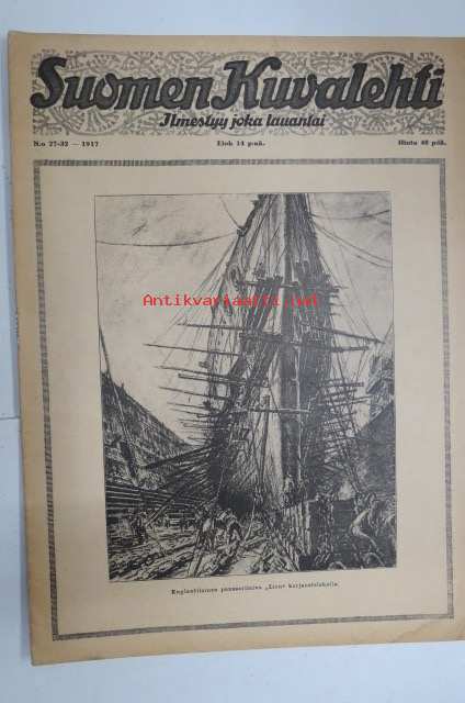 Suomen Kuvalehti 1917 nr 27, kansikuva Englantilainen panssarilaiva