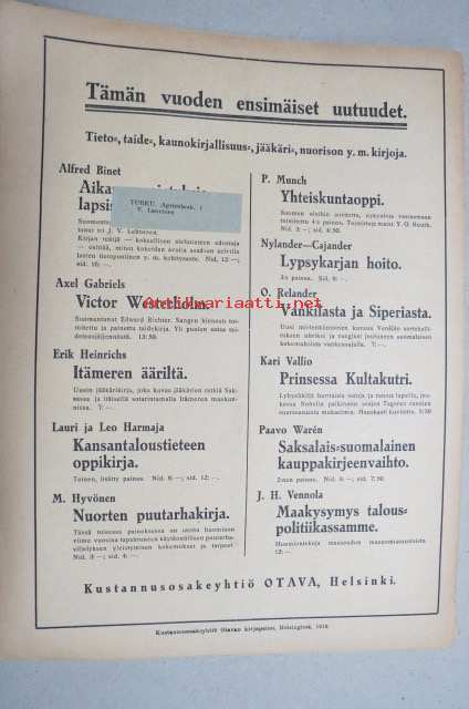 Suomen Kuvalehti 1919 nr 5, kansikuva Helsingin uusi asemarakennus, Kipu ja kivunlievitys, Suinulan veriaamun vuosipäivänä -Mukana olleen valaehtoinen kertomus, ym.