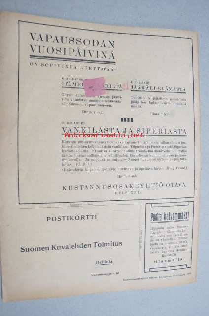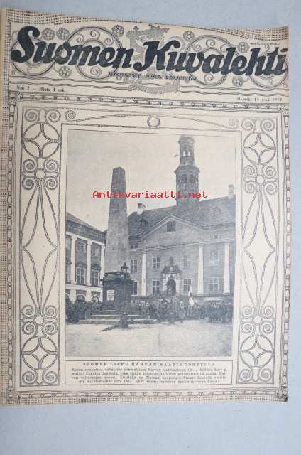 Suomen Kuvalehti 1919 nr 7, kansikuva Suomen lippu Narvan raatihuoneella, Suomen vanhin kirjanpainaja ja kirjainkustantaja G.V. Vilén, Valkoinen nousu Karjalassa, ym
