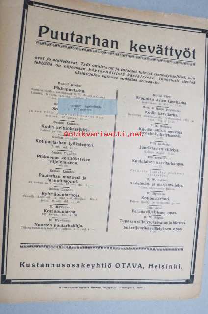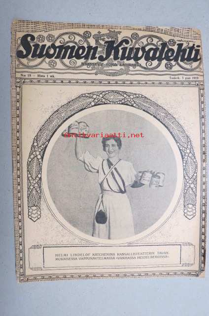 | Saatavilla | 3 kpl | | Julkaisuvuosi | 1919 | | Kunto | K2 | | Sidonta/painoasu | Lehti | | Kielet | Suomi |
