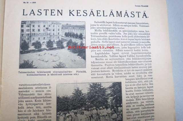 Suomen Kuvalehti 1919 nr 33, kansikuva Elokuu, Kuva pääkaupunkimme lasten kesäelämästä, Pitkämatkaisia valtamerenlaivoja, Sankarihautojen muistomerkkejä, ym.