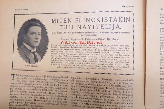 Suomen Kuvalehti 1919 nr 47, kansikuva Viimeinen kino-ennätys, Miten Flinckistäkin tuli näyttelijä, Koira järjestyksenvalvojain apuna, Ystävykset, Muista maista, ym.