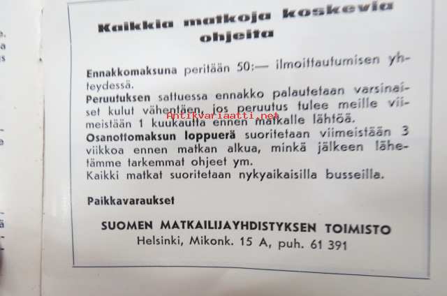 Suomen Matkailijayhdistyksen Seuramatkat 1965 -esite