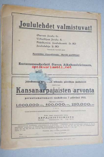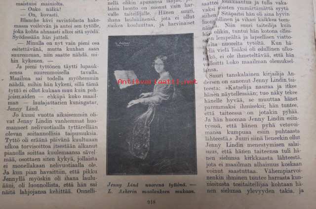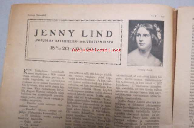 Suomen Kuvalehti 1920 nr 40, kansikuva Irma Törnroos, Jenny Lind - Pohjolan satakielen 100-vuotismuisto, Otravaaran rikkikiisulouhimo, Suomalaista sisua, ym