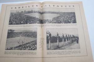Suomen Kuvalehti 1921 nr 38, kansikuva Adolf Lindfors, Presidentti Petsamossa, Veretön sunnuntai, Amerikkalainen jalkapallopeli, Urheilun valtavuus, Muotokuvia, ym.