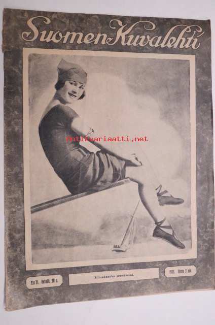 Suomen Kuvalehti 1921 nr 31, kansikuva Uimakauden merkeissä, Hyökkäysvaunukilpailuja katsomassa, Hevosmiesten sivu, Kotimaisia kuvia, Suomalaiset Latviassa, ym.