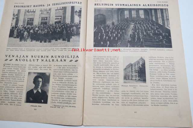 Suomen Kuvalehti 1921 nr 39, kansikuva Kevyt miinan hettäjä, Ensimmäiset kauppa- ja teollisuuspäivät, Venäjän suurin runoilija kuollut nälkään, Muotokuva, ym.