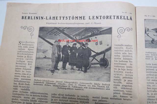Suomen Kuvalehti 1921 nr 29, kansikuva Kesäinen valokuvaharjoitelma, Hollantilainen Suomi-ystävä itsenäisen Suomen vieraana, Berlinin-lähetystömme lentoretkellä, ym.