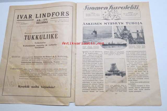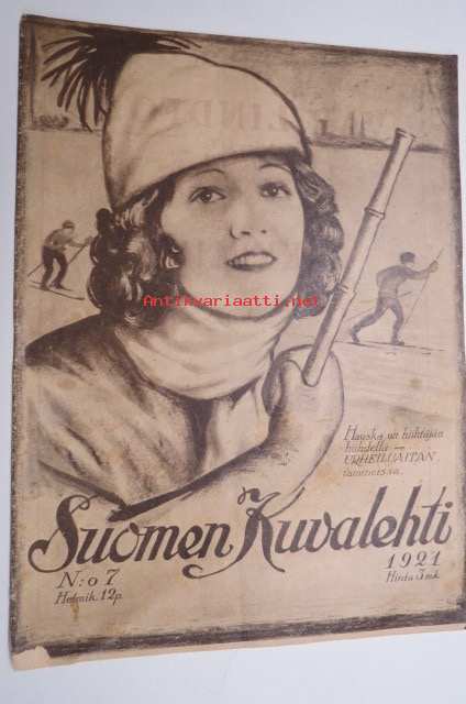 Suomen Kuvalehti 1921 nr 7, kansikuva "Hauska on hiihtäjän hihdellä urheiluaitan tamineissa", Äskeisen myrskyn tuhoja, Syrjäänien maa ja kansa, Viron kuvia, ym.