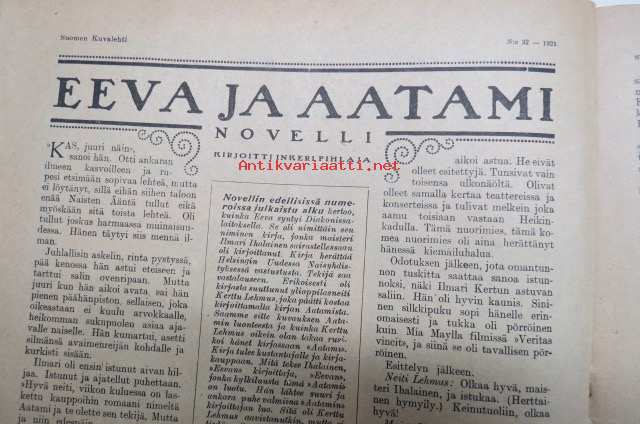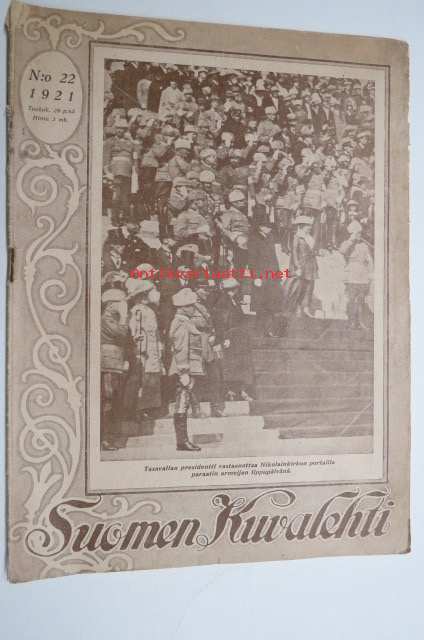 Suomen Kuvalehti 1921 nr 22, kansikuva Tasavallan presdentti vastaanottamassa Nikolainkirkon portailla paraatin armeijan lippupäivänä, Ärsytetty kaunotar, ym