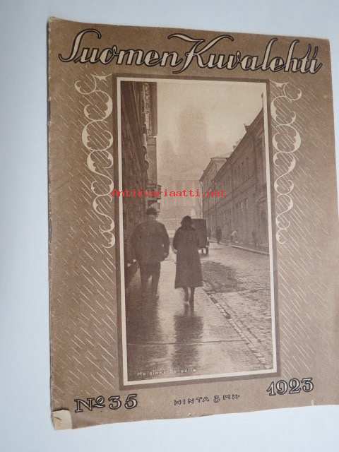 Suomen Kuvalehti 1923 nr 35, kansikuva Helsinki sateella, Maalaisen mietteitä, Taidekausi alkamassa, Kirje Dresdenistä, Pohjois-Karjalan vapausmuisto, Lukukuvia, ym.