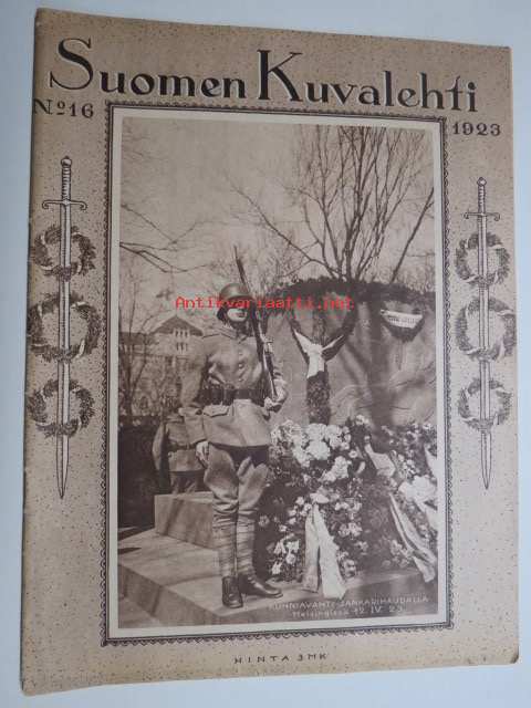 Suomen Kuvalehti 1923 nr 16, kansikuva Kunniavahti sankarihaudalla, Saksan koettelemukset, Vilho Sjöström 50-vuotias, Äänestyskone keksitty, Helsingin kuvia, ym.