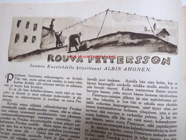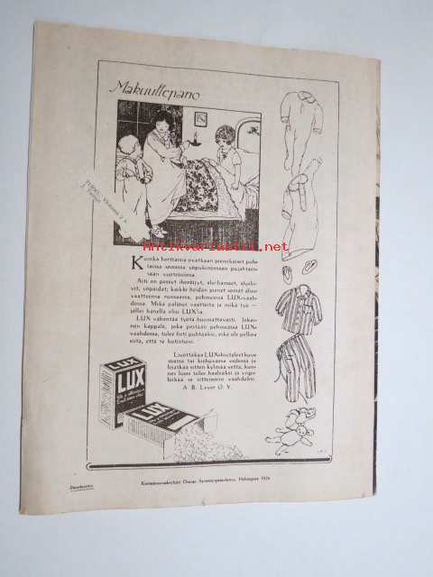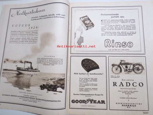 | Saatavilla | 1 kpl | | Julkaisuvuosi | 1926 | | Kunto | K2 | | Sidonta/painoasu | Lehti | | Kielet | Suomi |