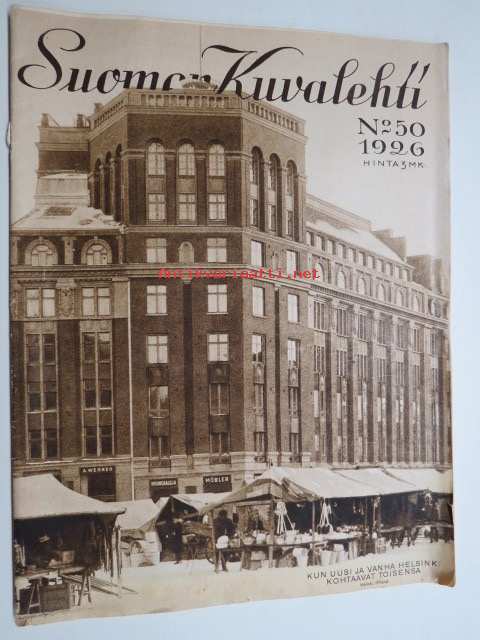 Suomen Kuvalehti 1926 nr 50, kansikuva "Kun uusi ja vanha Helsinki kohtaavat toisensa", Muuan Kuvavirta, Kirjakauppojen kuukausi, Yellowstone, Naurishauta, ym.