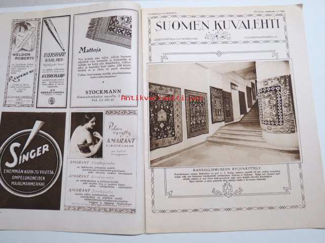 Suomen Kuvalehti 1926 nr 45, kansikuva Eine Laine, Kansallismuseon Ryijynäyttely, Vanhat ja nuoret, Pikku kaupunki, Kaarlo Atran näyttelyssä Tampereella, ym.