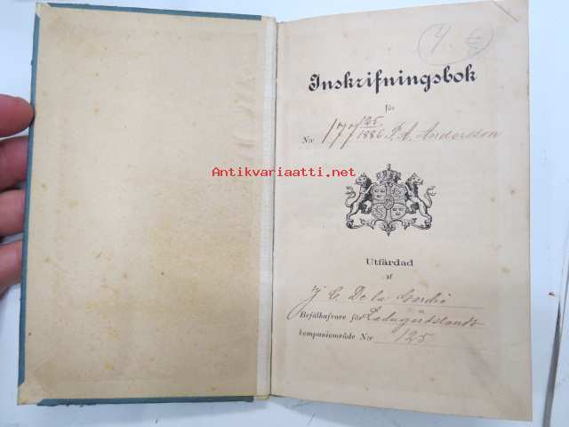 Petter Axel Andersson, Inskrivningsbok för 177 / 125 / 1886 Utfärdad af J.C. De la Gardie - Befällhavare för Ladugårdslands kompaniområde nr 125 -palveluskirja