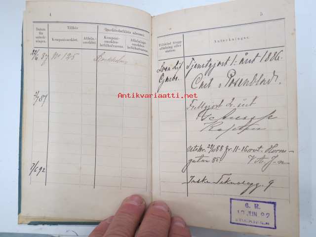 10 x 17 cm, swedish military service record book.