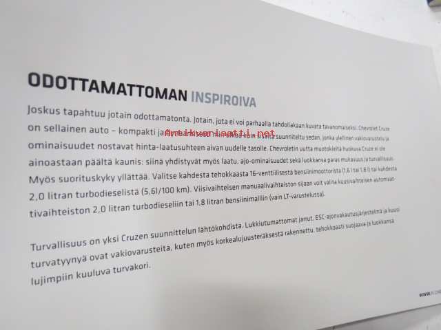 Chevrolet Cruze -myyntiesite / sales brochure