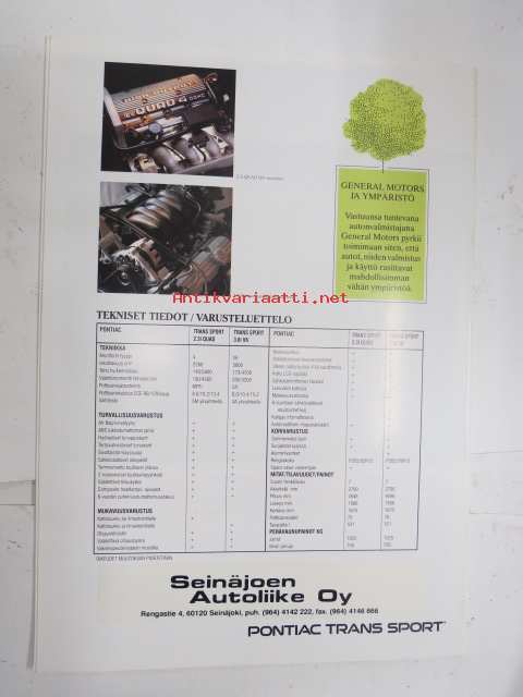 Pontiac Trans Sport -myyntiesite / sales brochure