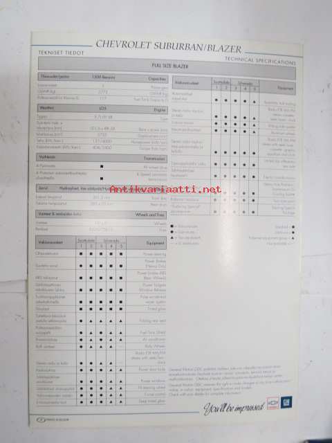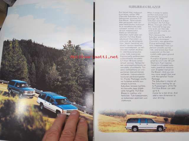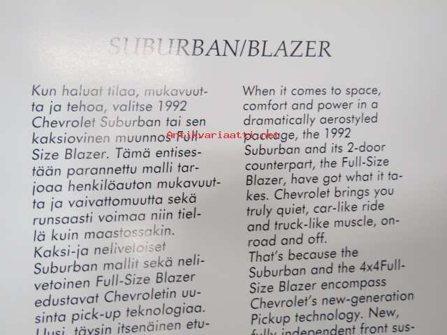 Chevrolet Suburban / Blazer 1992 -myyntiesite / sales brochure