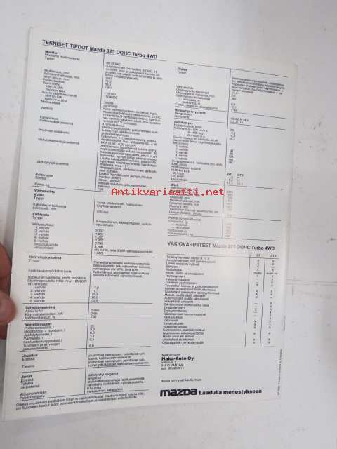 Mazda 323 4WD 1987 -myyntiesite / sales brochure