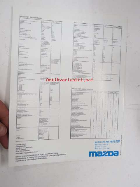Mazda 121 1989 -myyntiesite / sales brochure