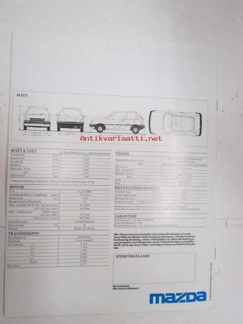 Mazda 121 1988 -myyntiesite, ruotsinkielinen / sales brochure