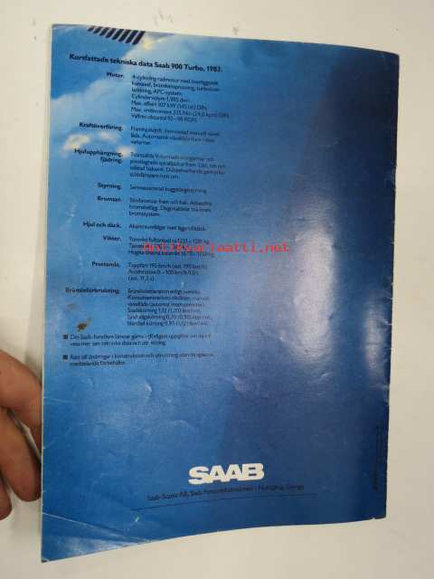 Saab Turbo APC - 900 Turbo 198? -myyntiesite / sales brochure