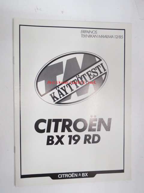 Citroën BX 19 RD 1985, TM käyttötesti eripainos 12/85 -myyntiesite / sales brochure