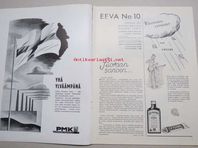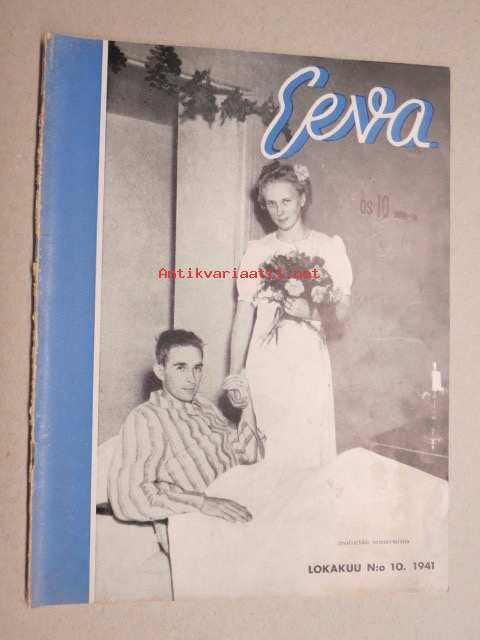 Eeva 1941 nr 10 kansikuva Invaliidihäät sotasairaalassa, Antonina -suruton sotavanki, Kurjuutta ja koreutta, Turkkilainen joka pakeni morsiamensa arpajaisvoittoa, ym