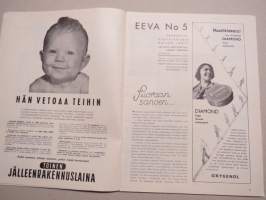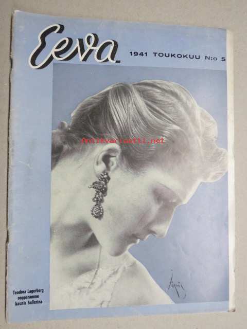 Eeva 1941 nr 5 kansikuva Teodora Lagerborg oopperamme kaunis ballerina, Äitini, Baletti akvaariossa, Poikamiesten kylä Serbiassa, Satamakaupungin teatteriväkeä, ym.